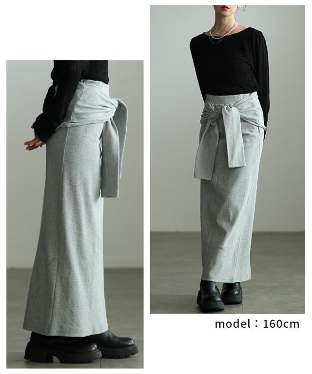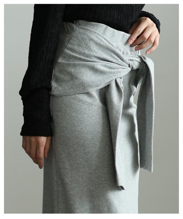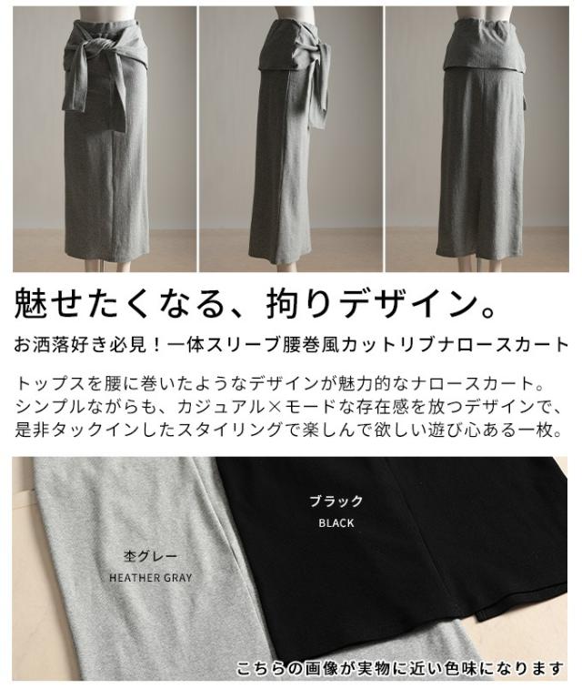 商品名: 一体スリーブ腰巻風カットリブナロースカート