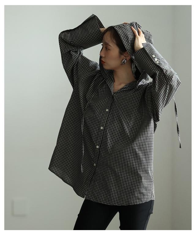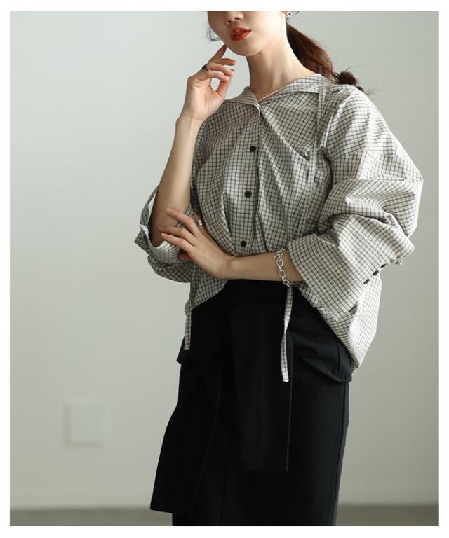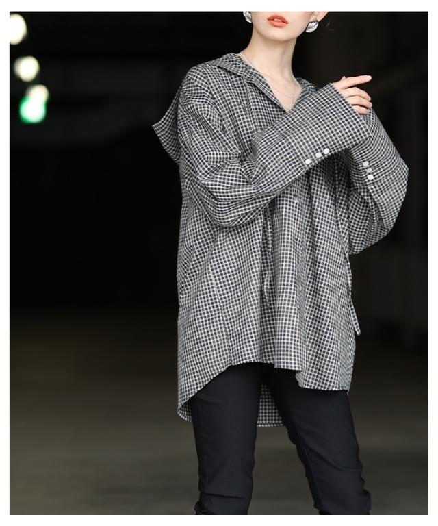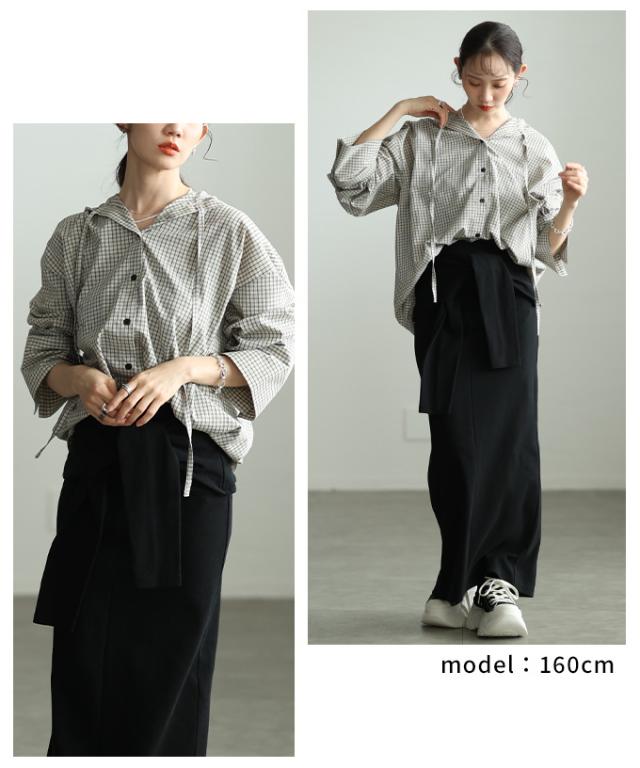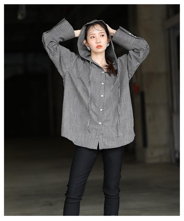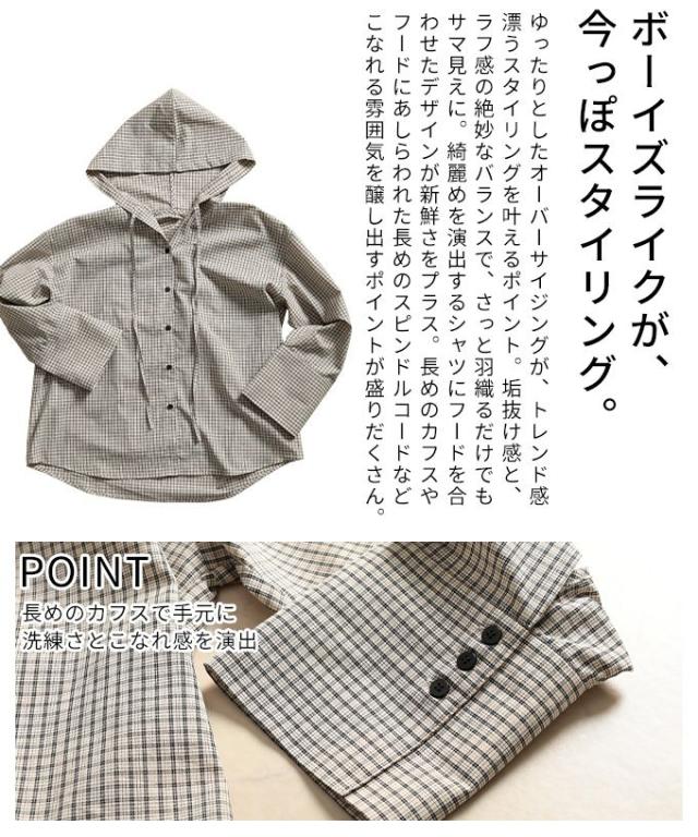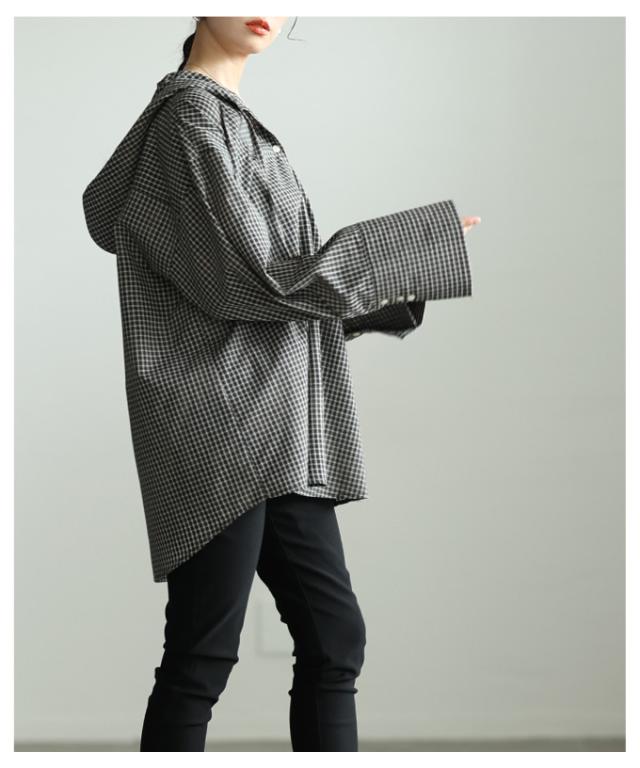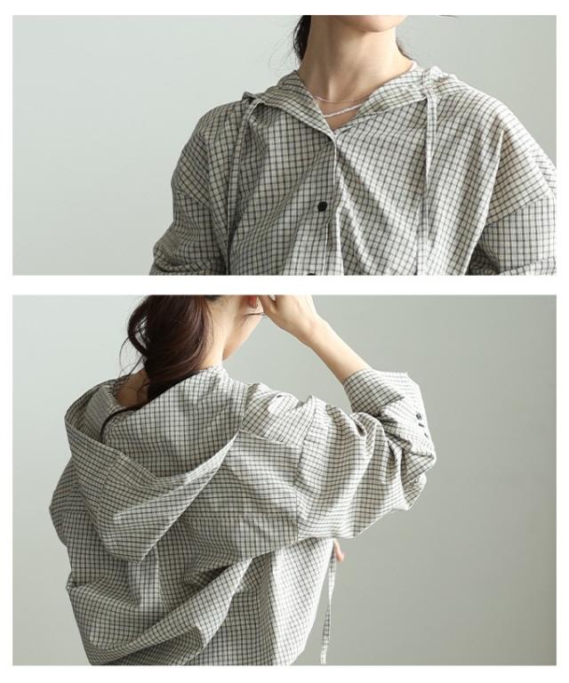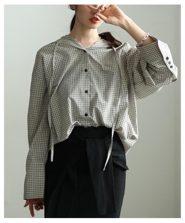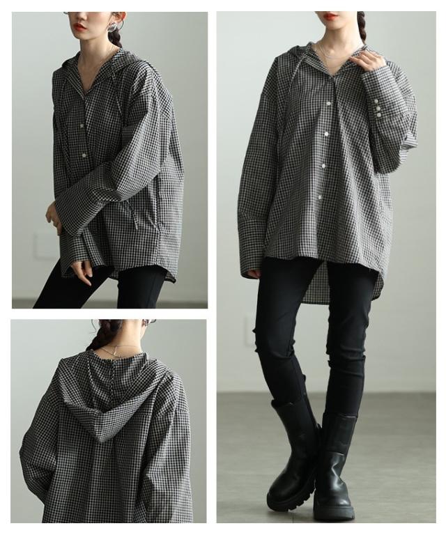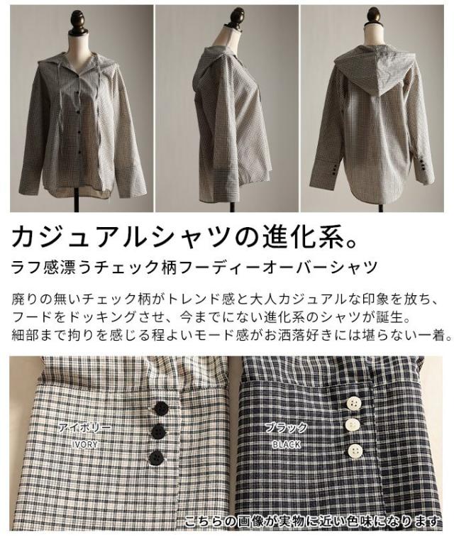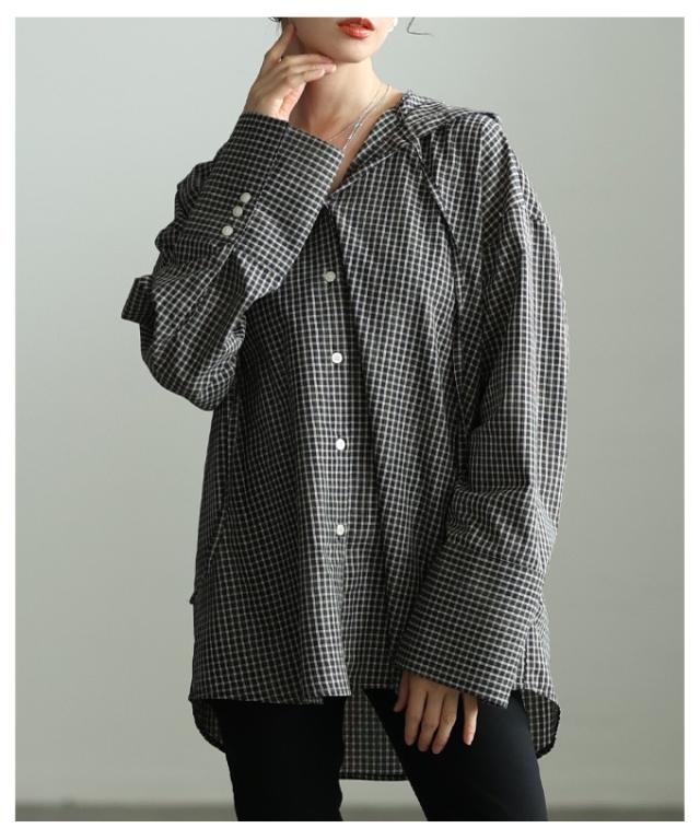 春新作 ラフ感漂うチェック柄フーディーオーバーシャツ レディース ファッション トップス シャツ チェック 総柄 フード オーバーサイズ 長袖 ロングカフス テールヘム 30代 40代 50代 60代 アラモード alamode otona 大人 cawaii 可愛い 洋服 かわいい服 aldt-481r3318