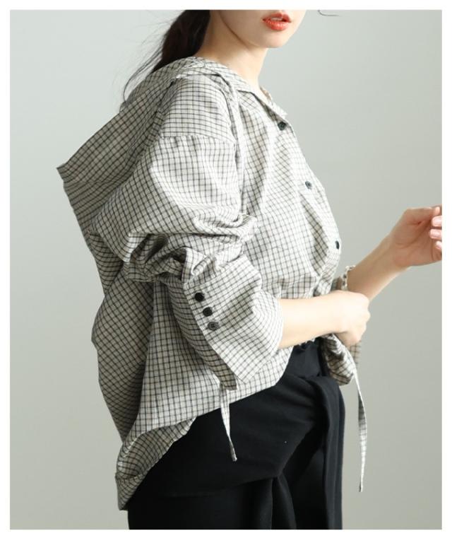 商品名: チェック柄フーディーオーバーシャツ