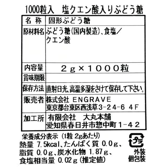 大丸本舗 塩クエン酸入りぶどう糖 タブレット 2g×1,000粒 (約2kg) 熱中症対策 業務用