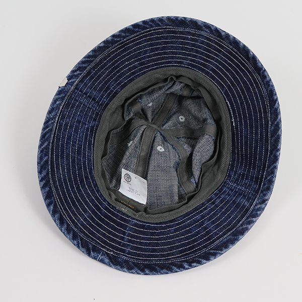 アメリカ陸軍のワークウェアとして採用された通称「デニムアーミーハット」の リプロアイテム。 実用性を重視した日差しを遮るための広めのブリムなど、 無骨でありながらもデニム素材と形状のバランスが秀逸で、今でも残り続ける名作モデルです。 【素材】 1950年代の501をベースに再構築したデニム素材は当時の風合いを忠実に再現するため、 生地づくりの工程を、あえてローテクな手法にこだわり、 旧式の機械と人の手によって、自然なムラ感や表情を引き出しています。 〔 洗濯方法 〕 手洗いが可能です。 汗をかいた場合は手洗いしていただくか、よく絞ったタオルでしっかりと汗をふき取り、完全に乾かしてください。 ※汗が付着したままの状態は変色の原因となります。 | ||||||