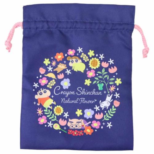 「クレヨンしんちゃん 巾着袋 トラベル巾着 フラワー ネイビー アニメキャラクター グッズ メール便可」