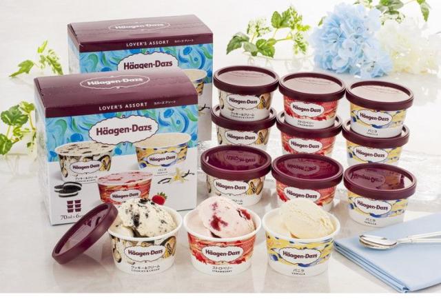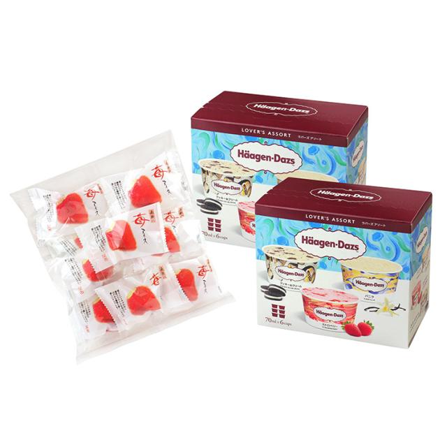 内容量:ハーゲンダッツラバーズアソート(バニラ・クッキー&クリーム・ストロベリー各70ml×各2)×2、苺アイス約20g×9