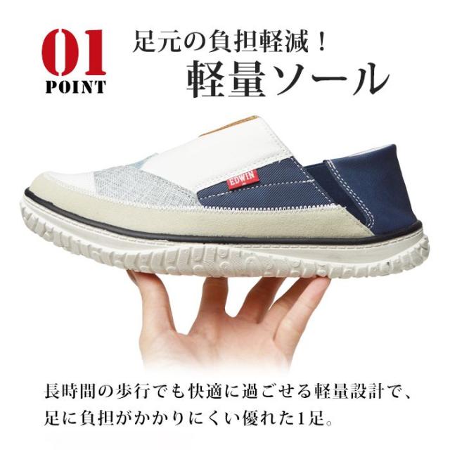 【送料無料】EDWIN エドウィン スリッポン メンズ スニーカー 軽量 2WAY コンフォート ウォーキング 幅広 3E EEE カジュアルシューズ パッチワーク サイドゴア 防滑 紳士靴 靴 メンズシューズ/2026新作 春夏 新生活