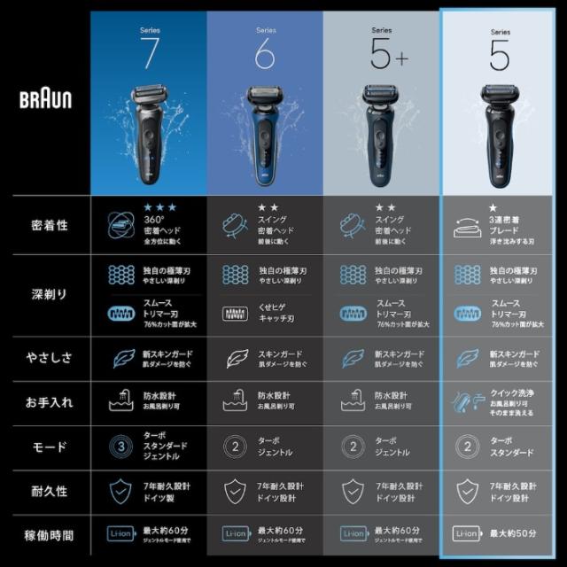 ブラウン シリーズ5は、3連密着ブレードを搭載したシェーバーで、肌の凹凸に刃がしっかり密着。