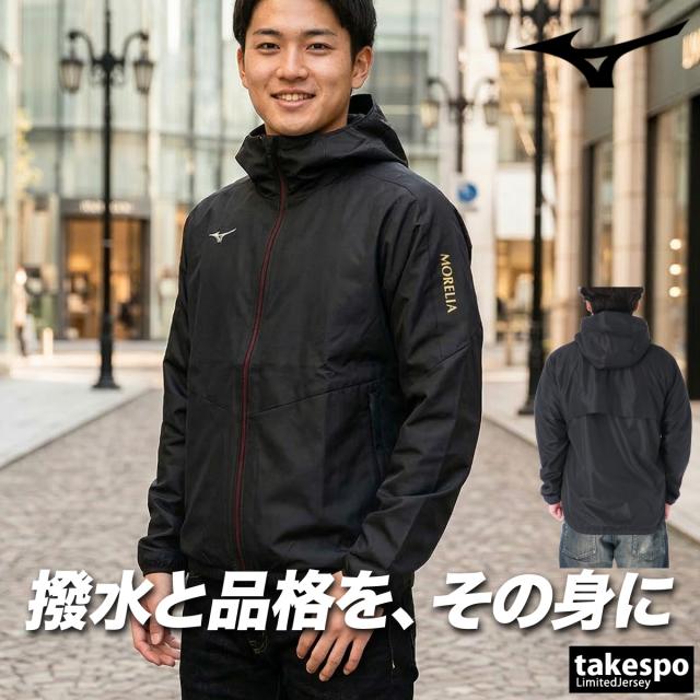 ミズノ ウインドジャケット メンズ ブランド Mizuno フード付き フーディ 裏メッシュ 裏地付き はっ水 撥水 フルジップ 黒 サッカー