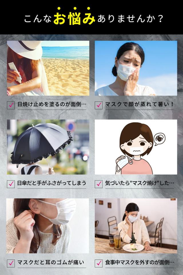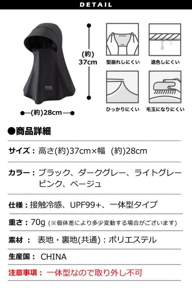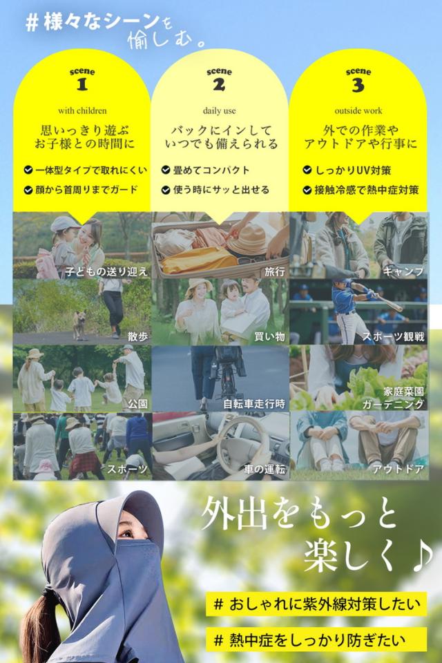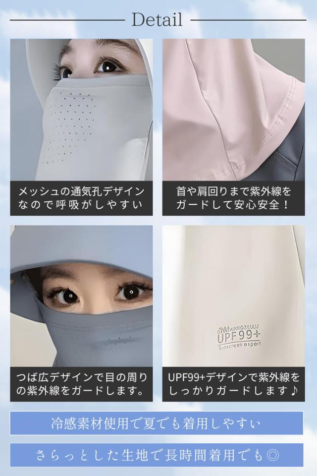 頭から首周りまでの一体型なので、360°全方向の紫外線をカットします