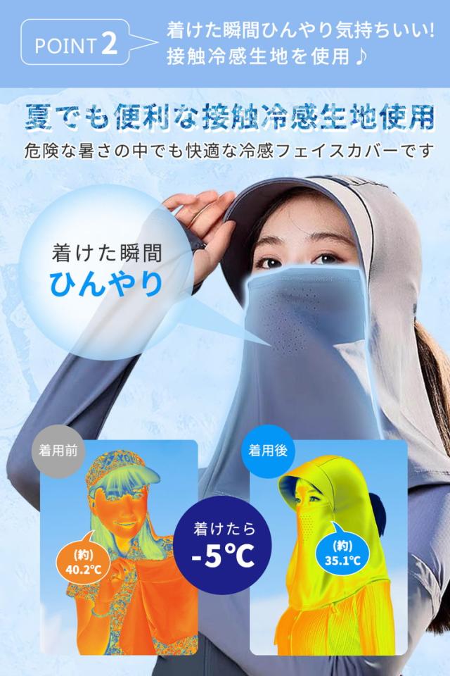 接触した時にひんやりする冷感生地使用の一体型フェイスカバーです