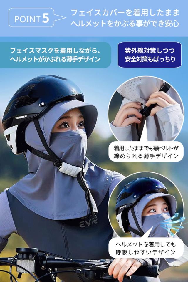 薄手デザインなので、フェイスカバーを着用したままでもヘルメットがかぶれます