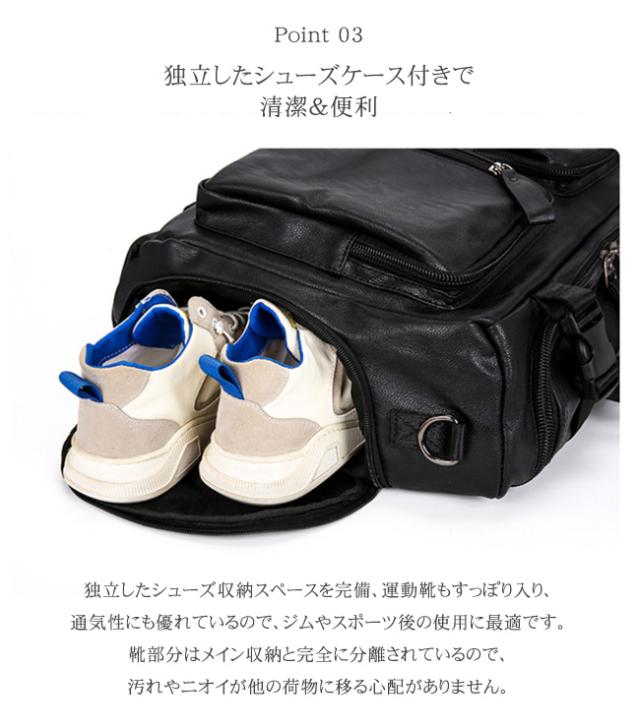 point 01.6wayデザイン ベルトを収納すれば、リュックからハンドバッグやショルダーバッグに簡単にチェンジ、すっきりとした手提げスタイルにもなります。シーンに応じて持ち方を自由にアレンジできます。 point 02. 大容量&マルチポケットで整理整頓が簡単 メイン収納はたっぷり容量で、ノートPCや書類も楽々収納。 point 03. 独立したシューズケース付きで清潔&便利 独立したシューズ収納スペースを完備、運動靴もすっぽり入り、通気性にも優れているので、ジムやスポーツ後の使用に最適です。