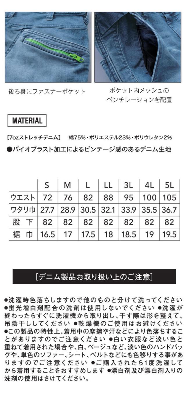 [6月上旬入荷先行予約]作業服 作業着 TORAICHI 寅壱 トライチ 春夏 デニムカーゴパンツ 8923-219 サイズS〜3L 2026年春夏新作 8923シリーズ