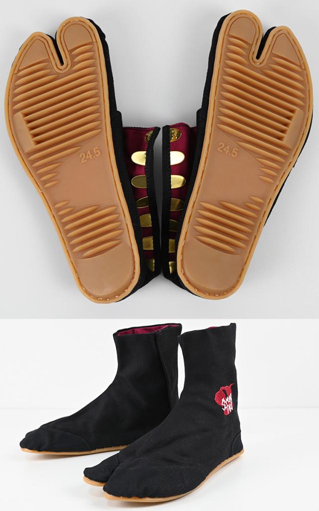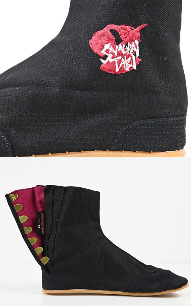 地下足袋 シューズ スニーカー かっこいい SAMURAI刺繍地下足袋 武将 行田足袋 黒赤 魂を込めた職人の手作り品