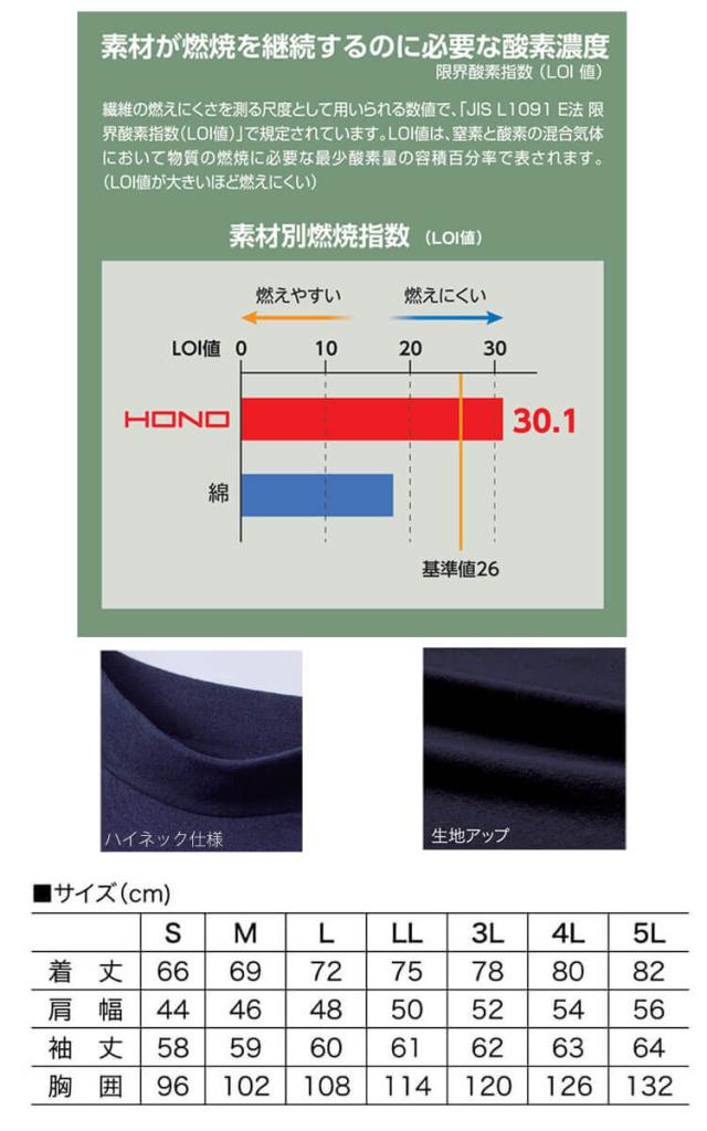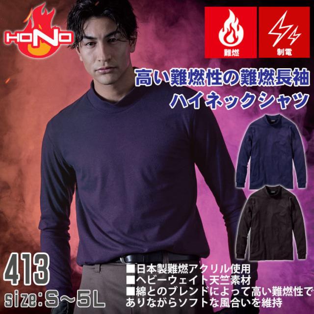 [6月下旬入荷先行予約]防炎作業服 HOOH 村上被服 難燃長袖ハイネックシャツ 413 耐炎 帯電 制電 通年 4L~5L 大きいサイズ