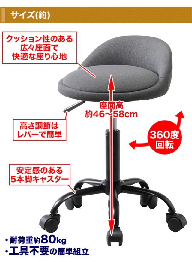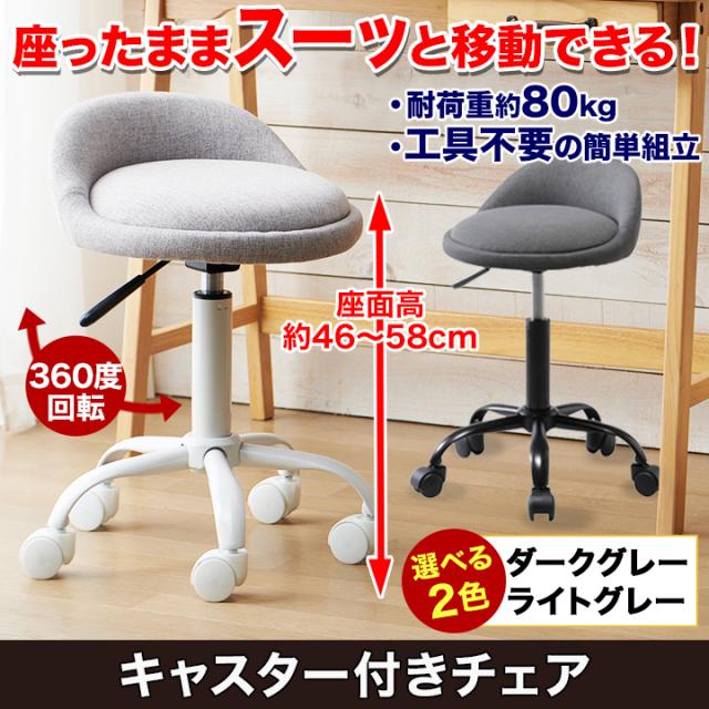 快適生活 キャスター付きチェア チェア 椅子 いす イス 回転椅子 昇降 作業用 コンパクト デスクワーク スツール 背もたれ付き 高さ調整 キッチン メイク