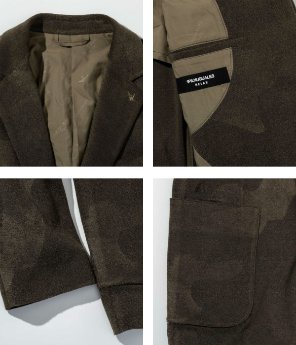 1PIU1UGUALE3 RELAX ウノピゥウノウグァーレトレ リラックス カモ柄エンボスパイルジャケット メンズ テーラード シングル スーツ きれいめ ブランド