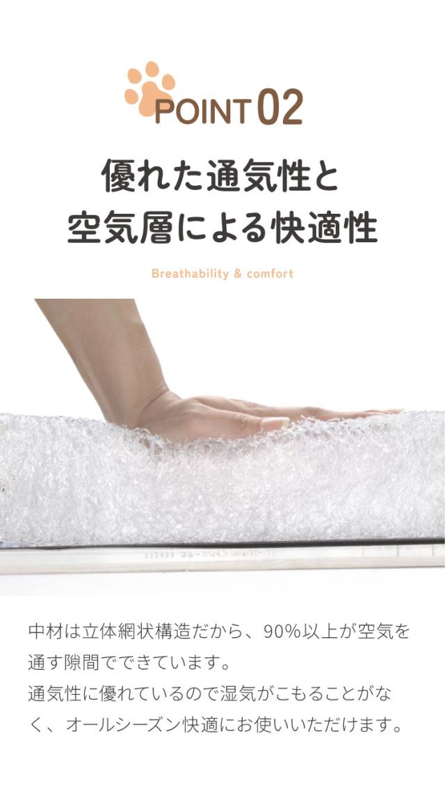 体圧を分散し、地面からの振動を吸収することで愛犬に快適な寝心地を提供します。