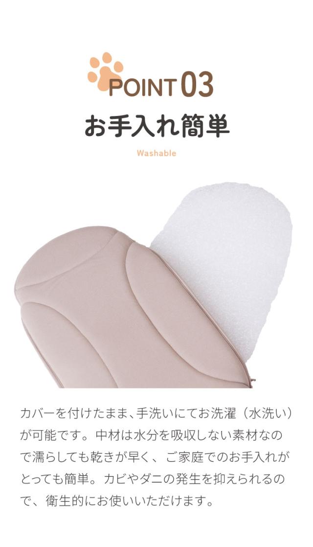 カバーを付けたまま、手洗いにてお洗濯(水洗い)が可能です。