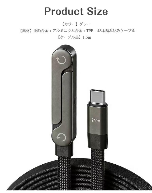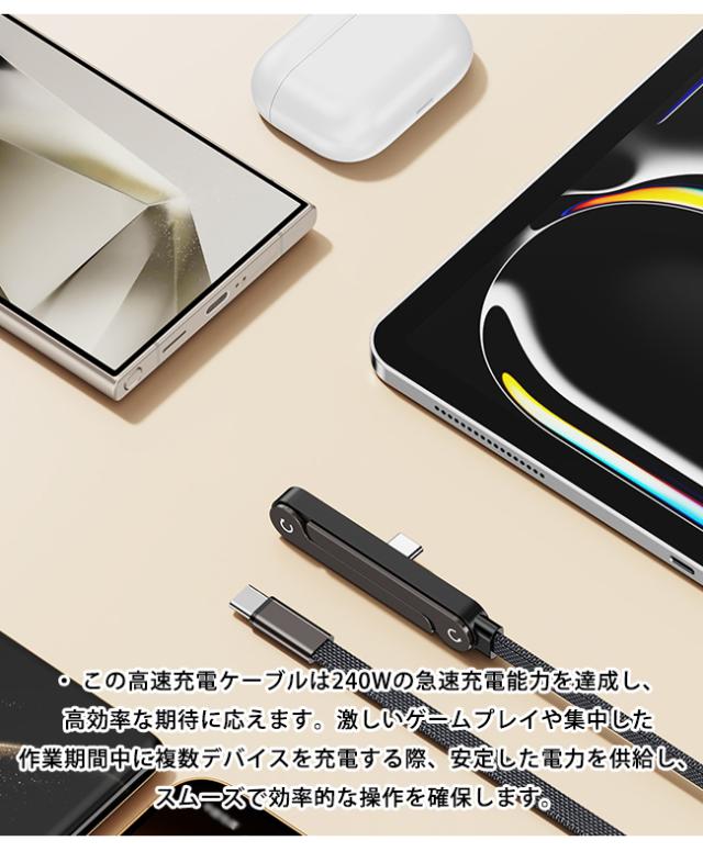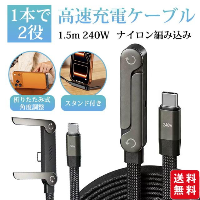 【新発売 20%OFFクーポン】高速充電ケーブル 240W 折りたたみ式 1.5m 角度調整 スタンド付き Type-C to Type-C スマホ ナイロン編み込み 急速充電 データ転送 480Mbps デュアル機能 コンパクト収納
