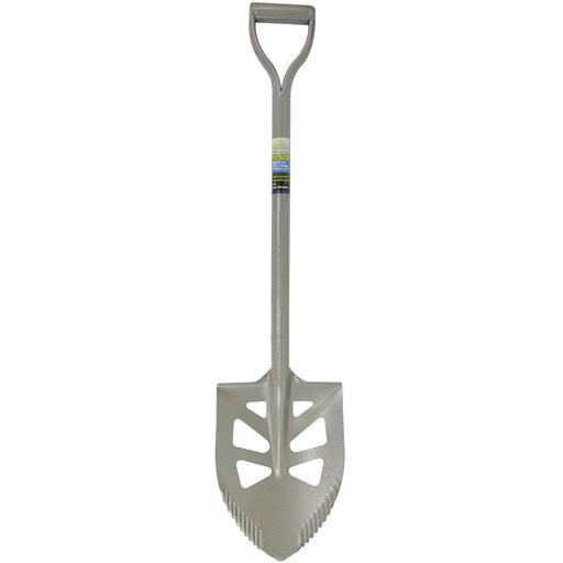 土堀りに最適な丸形(剣型)の先に波型エッジが付いているので、土中の根切りもできます。