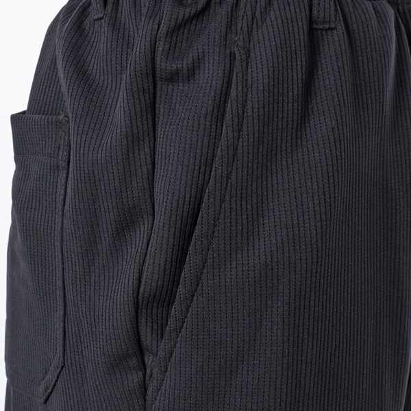 ウエスト部分は締め付けの少ないゴム仕様に加え、内側のドローコード(ヒモ)で細かなサイズ調整が可能。
