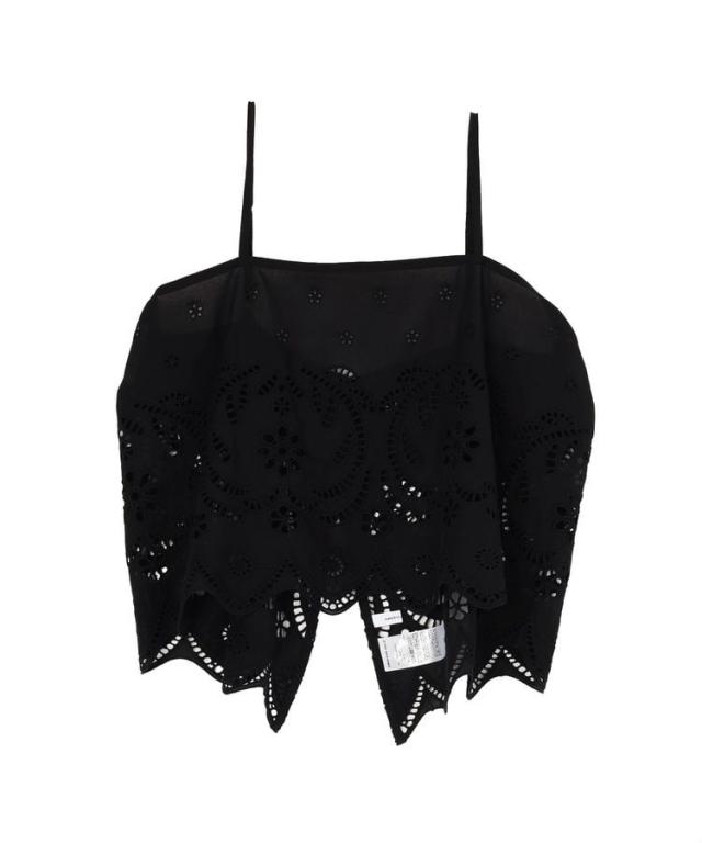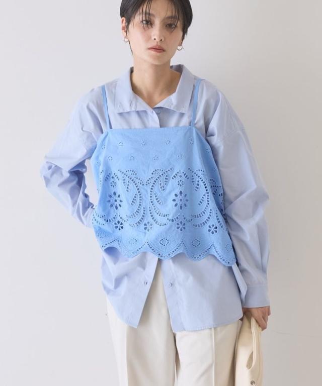 バテンレースがクラフト感のあるスクエアビスチェ。ボヘミアンをテーマにしたオリジナル刺繍のレース柄など、細部までこだわった一枚です。Aラインシルエットで体型を拾わず、これ一枚で着映えするレイヤードアイテム。シャツ×デニムのマニッシュな着こなしもおすすめです。