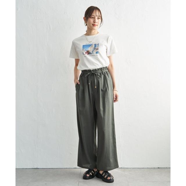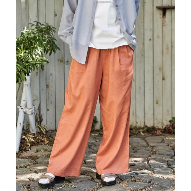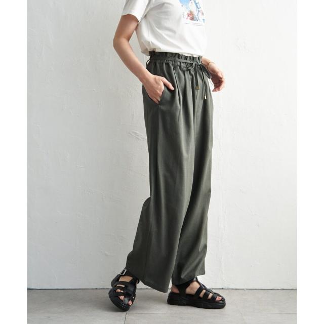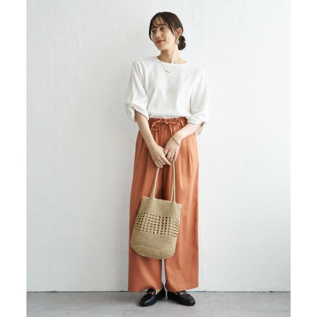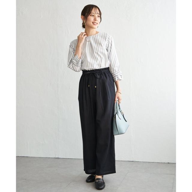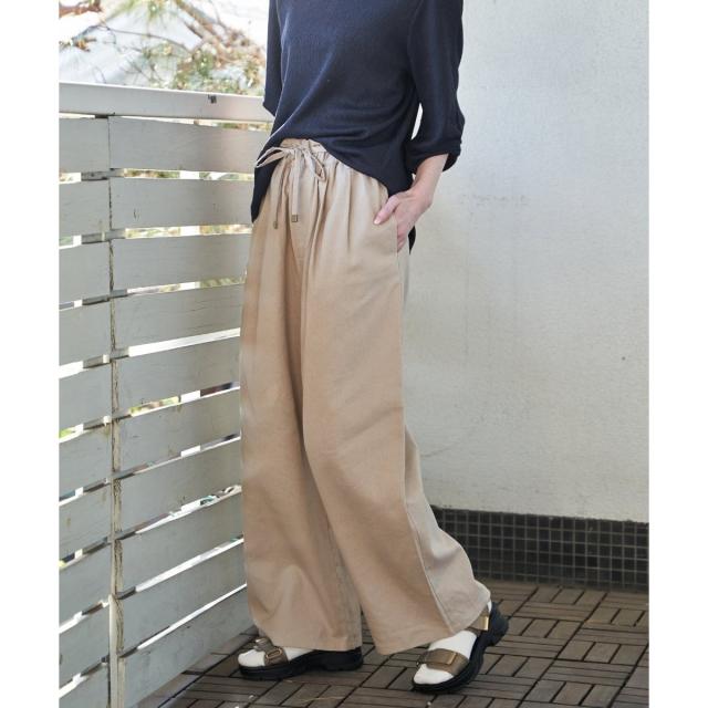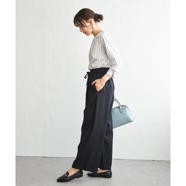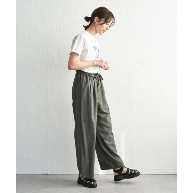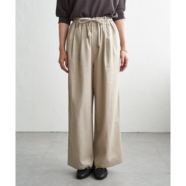 麻混ベルト付きイージーパンツ