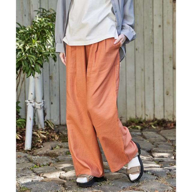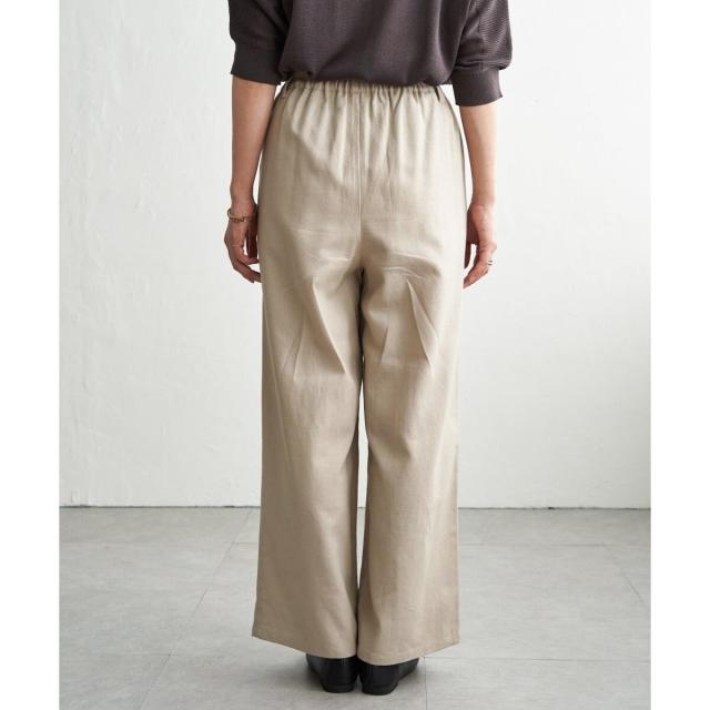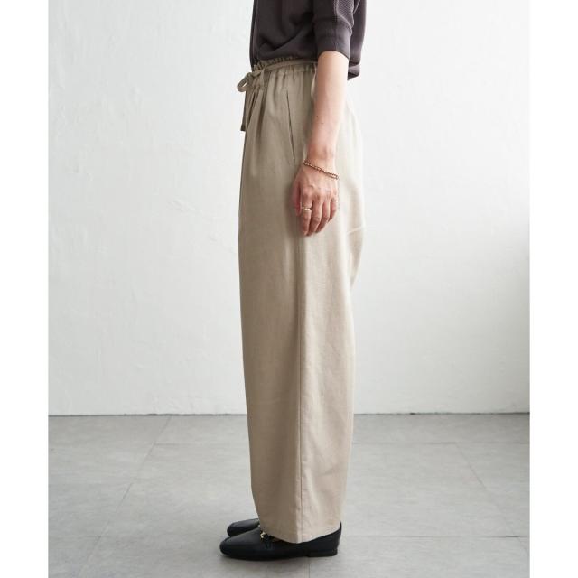 麻混素材のナチュラルな風合いが魅力のベルト付きイージーパンツ。
