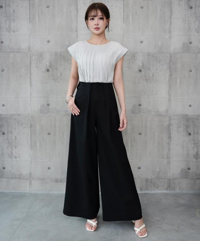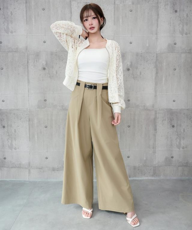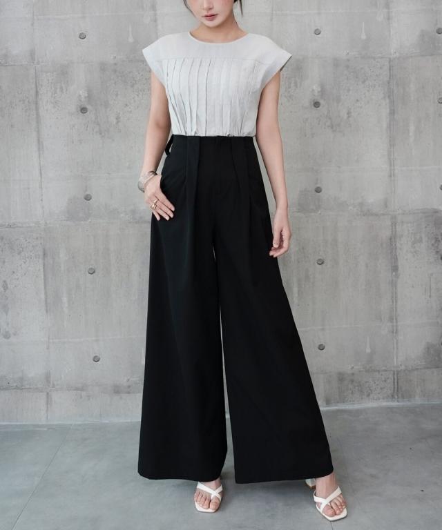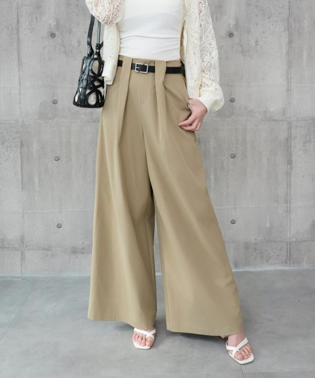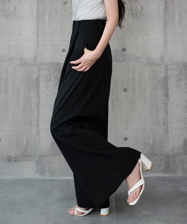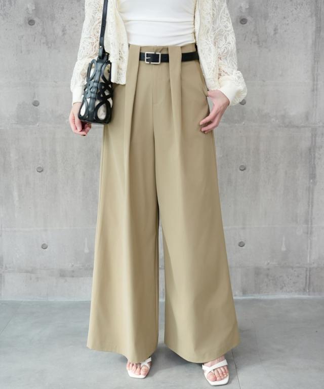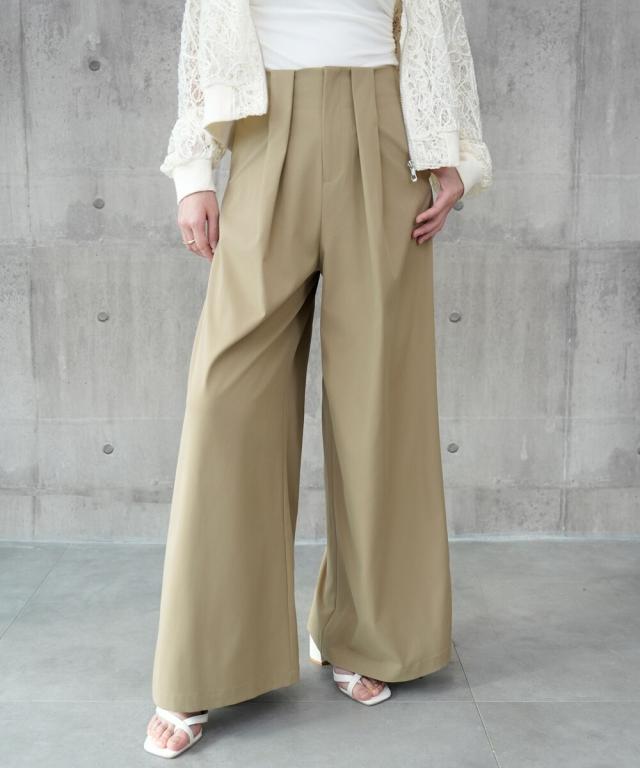 タックワイドパンツ スラックスワイド ハイウエスト 普段使い