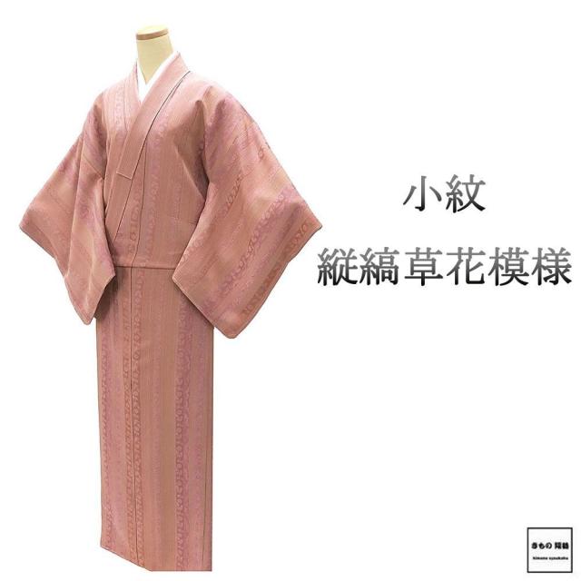 小紋 未使用 正絹 縦縞 草花 身丈158.5cm 裄丈66cm 小紋 未着用 美品 新古品 未使用品 着物 c4125