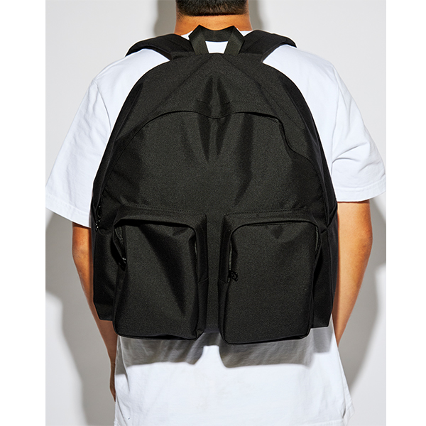 フロントに配置されたダブルポケットが特徴の、収納力と機能性を兼ね備えたバックパックです。