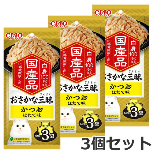 【メール便】3個セット いなば CIAO チャオ おさかな三昧 かつお ほたて味 180g×3個セット 猫用 パウチ ウェットフード 国産 送料無料