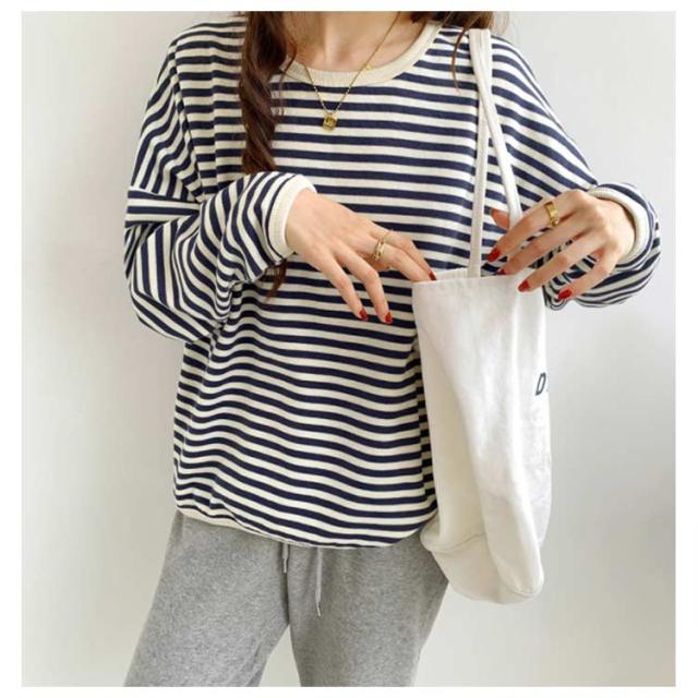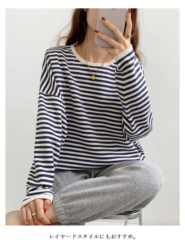 | 【M L XL】【3color】 ゆるっと可愛いボーダー柄。 レイヤードスタイルにもおすすめ。 コーディネートの幅を広げてくれるおすすめの1枚です。 ゆるっとしたリラックス感を演出してくれる。 | |