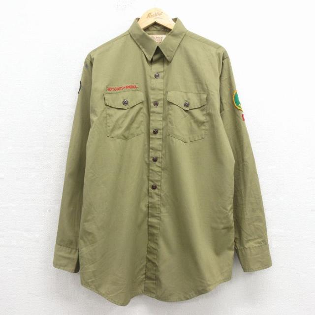 古着 長袖 ボーイスカウト シャツ メンズ 80年代 80s コブラ ロング丈 USA製 緑系 26jan31