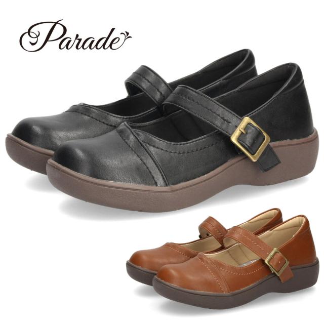 メリージェーンシューズ レディース 靴 ストラップシューズ パンプス 軽量 やわらかい ラウンドトゥ 黒 茶 ブラック キャメル 51306 Parade