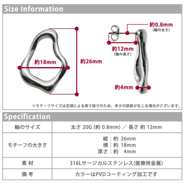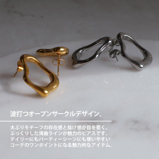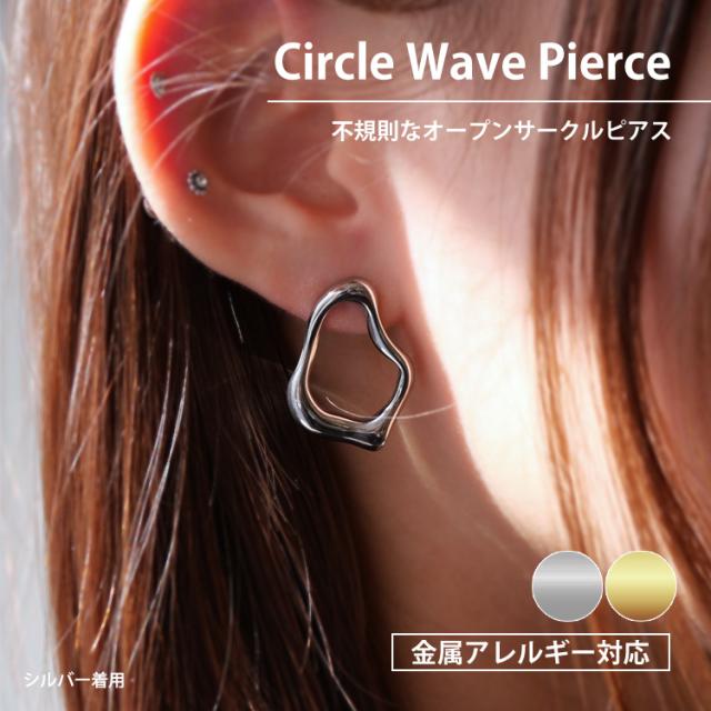 金属アレルギー対応 ステンレスピアス デザインピアス サークルウェーブピアス スタッドピアス ファーストピアス セカンドピアス スポーツ プール 両耳用