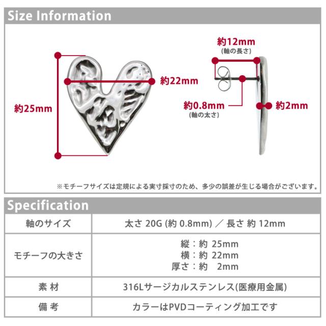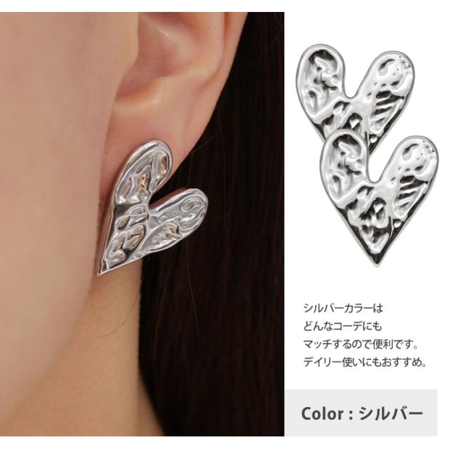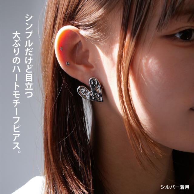 大ぶりモチーフの存在感が目を曳く、大人可愛いハートとサイズが魅力のピアスです。