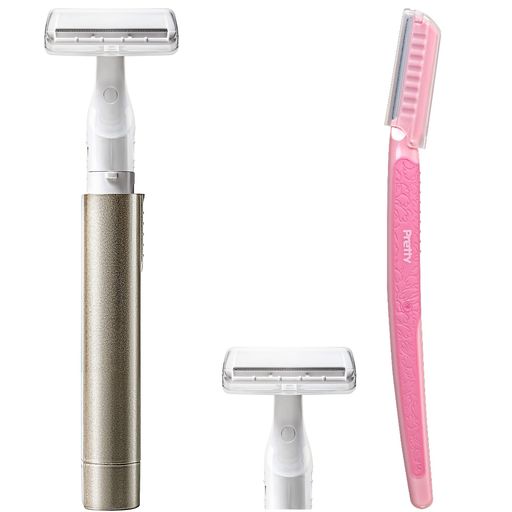 KAI 貝印 BI-HADA(ビハダ) OMPA フェイスシェーバー Tホルダー 電動シェーバー 女性カミソリ 産毛ぞり 眉毛剃り (替刃2個付+敏感肌用カミソリ1本セット) T型 4個アソート