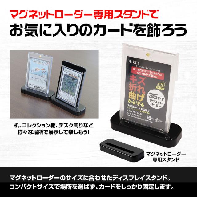 マグネットローダー+専用スリーブで大切なカードを二重保護。キズだけでなく指紋やホコリ対策、マグネットが外れる事故も防ぎます。 - 付属のマグネットローダー専用スタンドでお気に入りのカードを飾ろう