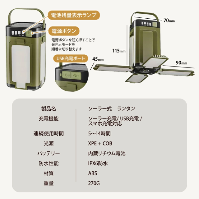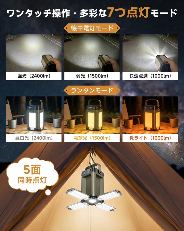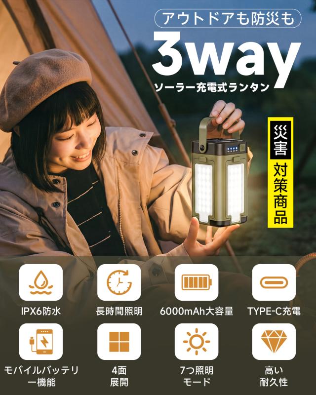 キャンプランタン LEDライト ソーラー&USB充電 6000mAh 防災ランタン 明るい 軽量 防水 アウトドア