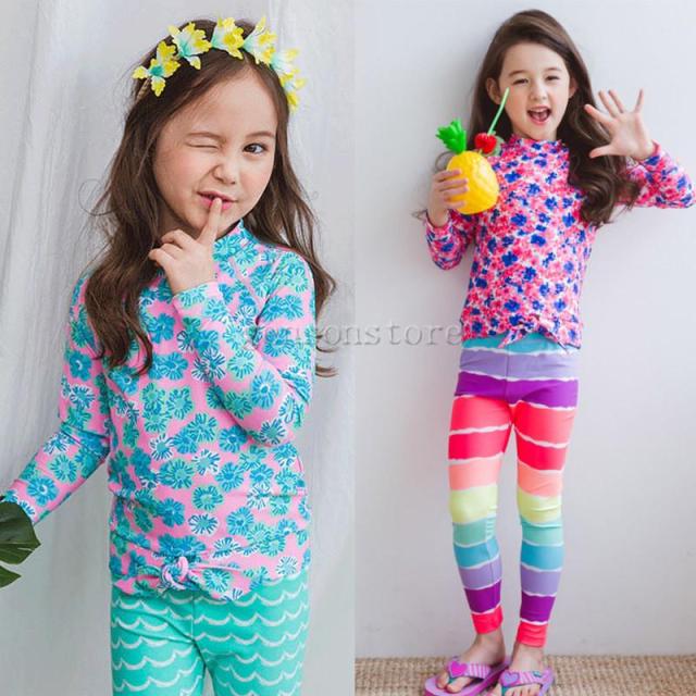 キッズ水着 セパレート 女の子 子供 ジュニア 2点セット 長袖トップス パンツ 上下別 女兒 ガールズ ラッシュガード UVケア 紫外線カット かわいい 体型カバー 水泳 スイミング 小学校 キッズ みずぎ スイムウェア 日焼け防止 プール 海 快適