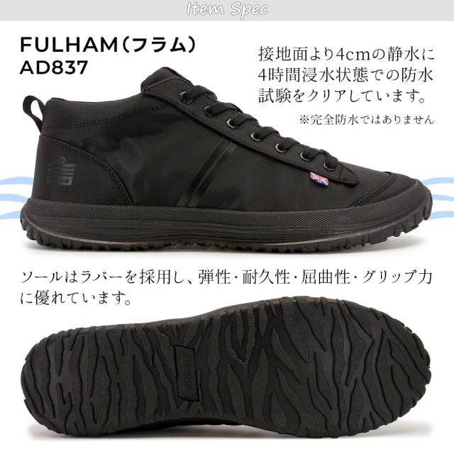 アドミラル 防水 スニーカー フラム AD837 レインシューズ メンズ レディース 薄底 Admiral FULHAM