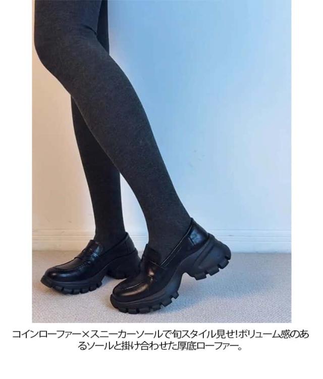 | 22.5?25cm ローファースニーカー コインローファー×スニーカーソールで旬スタイル見せ!ボリューム感のあるソールと掛け合わせた厚底ローファー。 旬のボリュームソールは履くだけでスタイルアップが叶います!もっちりしたしっかりと厚みのある中敷きは、足に優しくストレスフリーな履き心地。 超軽量で傾斜がほとんどない厚底ソールは、デイリー使いはもちろん、たくさん歩く日やお出かけにもおすすめ◎ どんなコーディネートにもハマる万能アイテム! | |