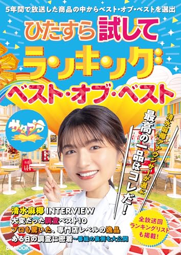 忖度なしのランキングが視聴者の絶大な支持を集める 情報番組の超人気コーナーが1冊の本に! MBS制作・TBS系列全国ネットの情報番組「サタプラ」の人気コーナー「ひたすら試してランキング」をテーマとした公式MOOKが発売されます。 「ひたすら試してランキング」はMBS 清水麻椰アナウンサーが、 サタプラ独自の方法で 毎回1つのテーマに沿った商品を長時間かけて徹底調査するコーナー。レトルト食品や調味料から家電、生活用品まで、忖度なしの検証結果で発表されるランキングの影響力は絶大で、放送後にスーパーやコンビニの棚が空になる現象もしばしば。 今回、2020年7月のコーナー開始以来260回を超える放送を重ねてきた中で、清水麻椰アナウンサーがとくに素晴らしかった商品を厳選して「ベスト・オブ・ベスト」を掲載。コーナーに登場したプロの料理人が選ぶ逸品や、ロケ現場密着取材、大変だった調査ベスト10、手みやげ&プチギフトにおすすめの逸品などの読み物企画も満載し、「ひたすら試してランキング」の魅力を誌面で紹介していきます。 【掲載内容】 ◎ひたすら試してランキング「ベスト・オブ・ベスト グルメ編」 ◎こ