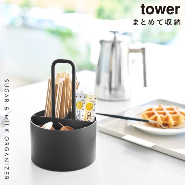 シュガー&ミルクオーガナイザー タワー 山崎実業 tower ティータイム グッズ 紅茶 コーヒー スティックシュガー 収納 おしゃれ モノトーン ホワイト ブラック 10807 10808