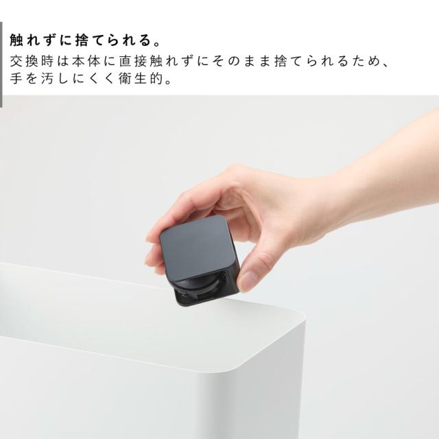交換時は本体に直接触れずにそのまま捨てられるため、手を汚しにくく衛生的。定期的な取り替えもスムーズに行えます。