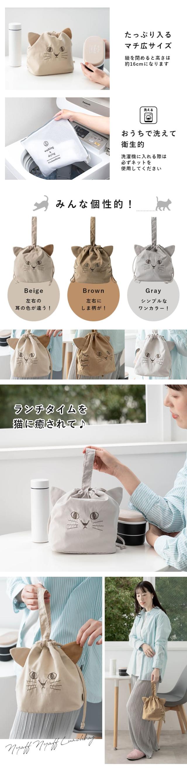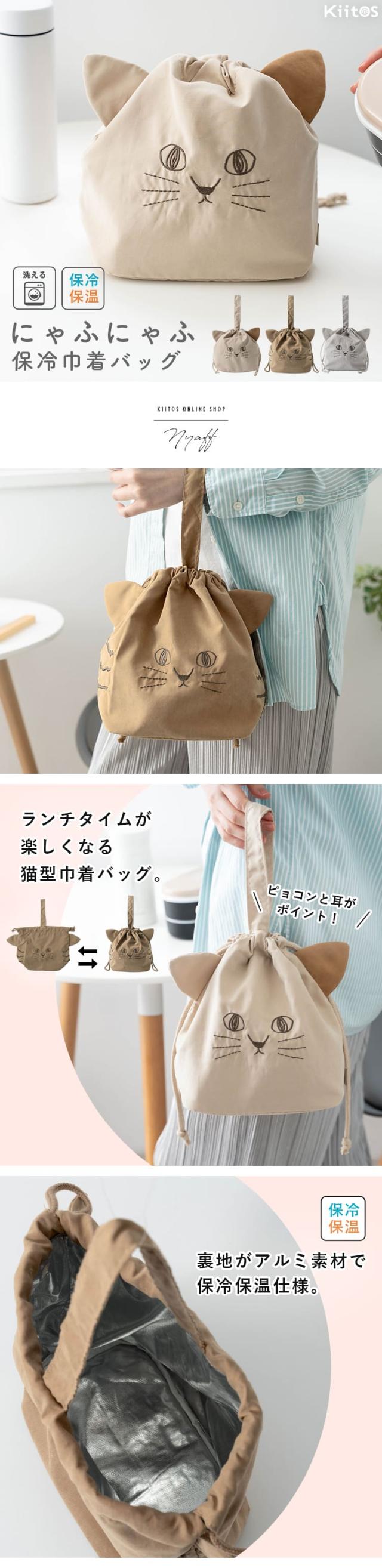 ランチバッグ 保冷 保温 巾着 猫 ネコ おしゃれ かわいい にゃふにゃふ 洗える プレゼント ギフト 弁当袋 大人 シンプル 軽量 マチ付き 持ち手付き 北欧 内側アルミ