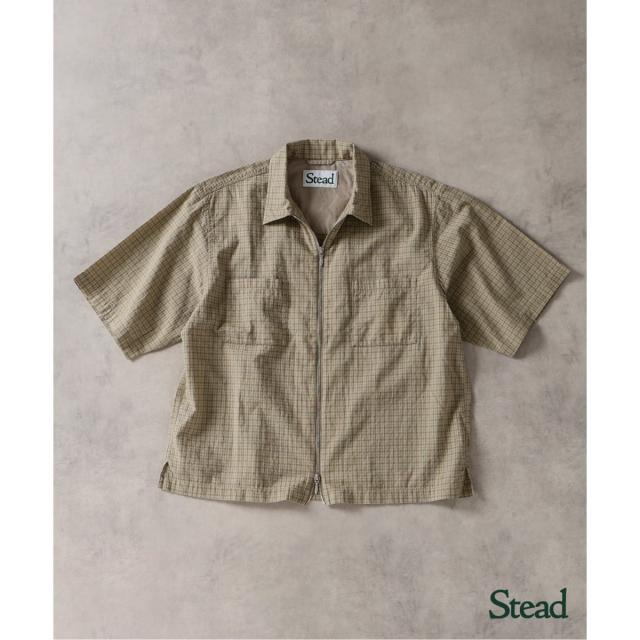 《予約》Stead / ドビー チェック ジップ 半袖 シャツ