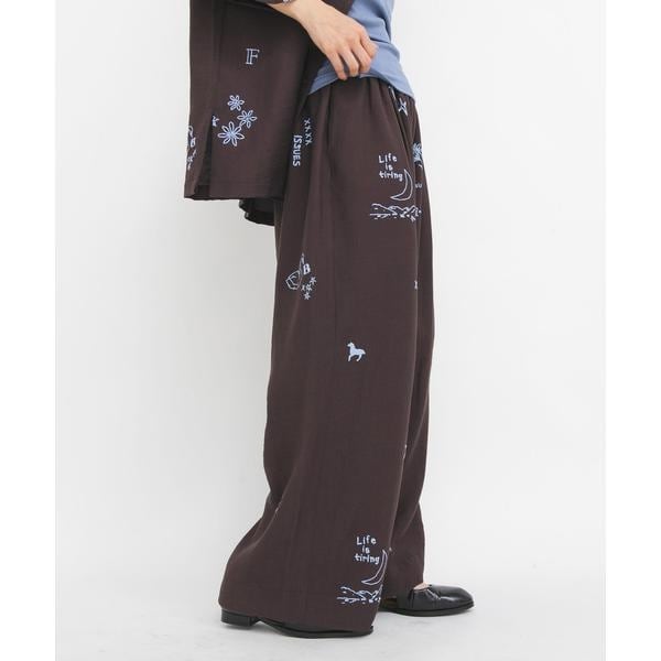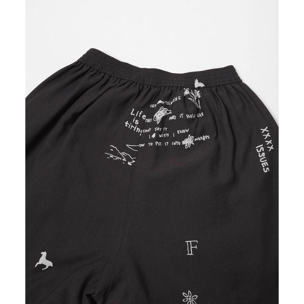 【キャッチーな刺繍プリントを施したデザインパンツ】