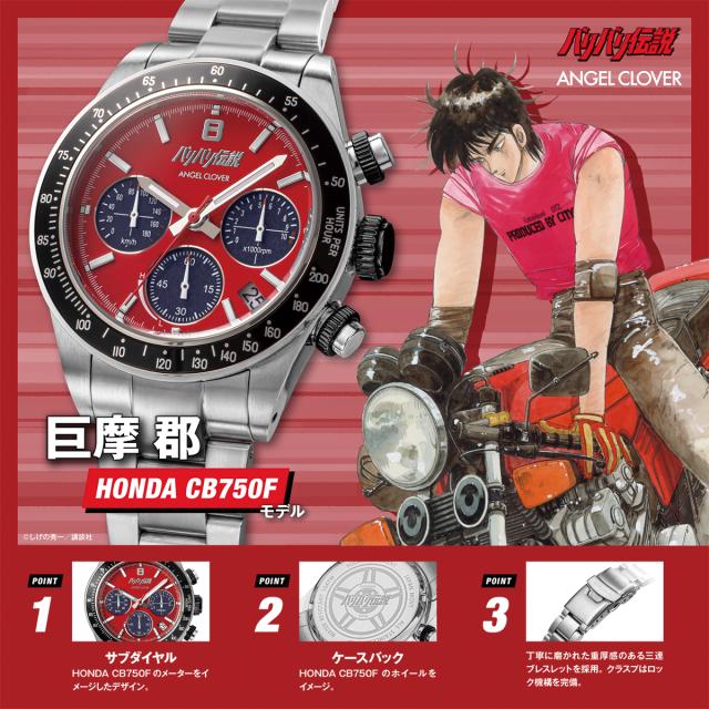 4月17日発売/予約 エンジェルクローバー バリバリ伝説 コラボレーションモデル 巨摩 郡 HONDA CB750F BA40-GUN メンズ 腕時計 ソーラー クロノグラフ