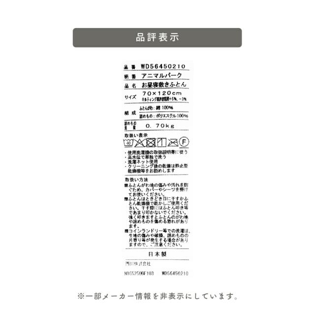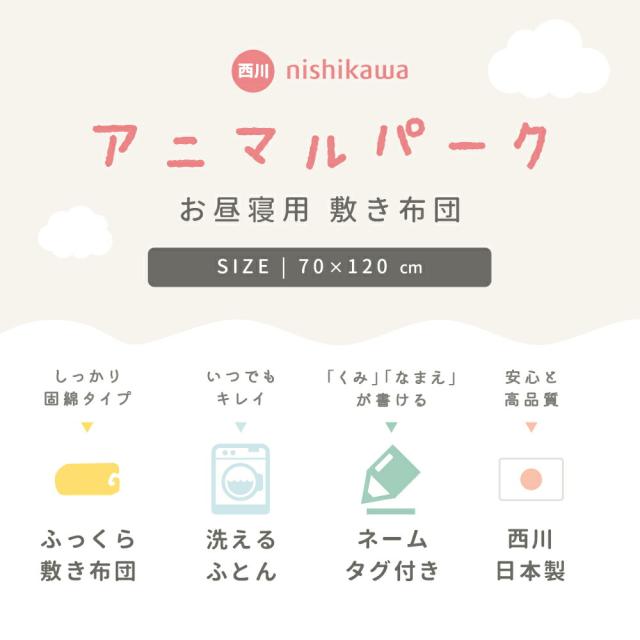 西川 お昼寝 敷布団 保育園 幼稚園 アニマルパーク 洗濯機OK 洗える 固綿入り 70×120cm 入園準備 クッション お昼寝布団 敷き布団 敷布団 お昼寝用敷きふとん ごろ寝マット キッズ ベビー 子ども 【当社限定】
